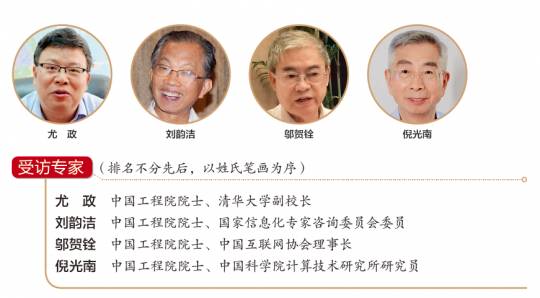 受访专家(排名不分先后,以姓氏笔画为序) 尤政:中国工程院院士、清华大学副校长 刘韵洁:中国工程院院士、国家信息化专家咨询委员会委员 邬贺铨:中国工程院院士、中国互联网协会理事长 倪光南:中国工程院院士、中国科学院计算技术研究所研究员